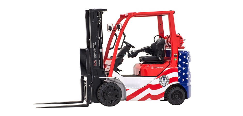 Toyota's first U.S. built forklift rolls off the line at the state-of-the art Toyota Manufacturing facility in Columbus, IN.